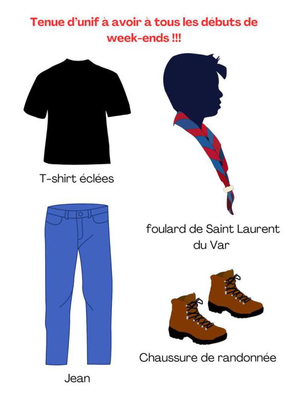 La tenue de jeu c'est ce que mettent vos enfants une fois arrivés sur le lieu du week-end (ou du camp)... c'est la tenue qu'ils peuvent mettre pour jouer, se salir, être à l'aise...