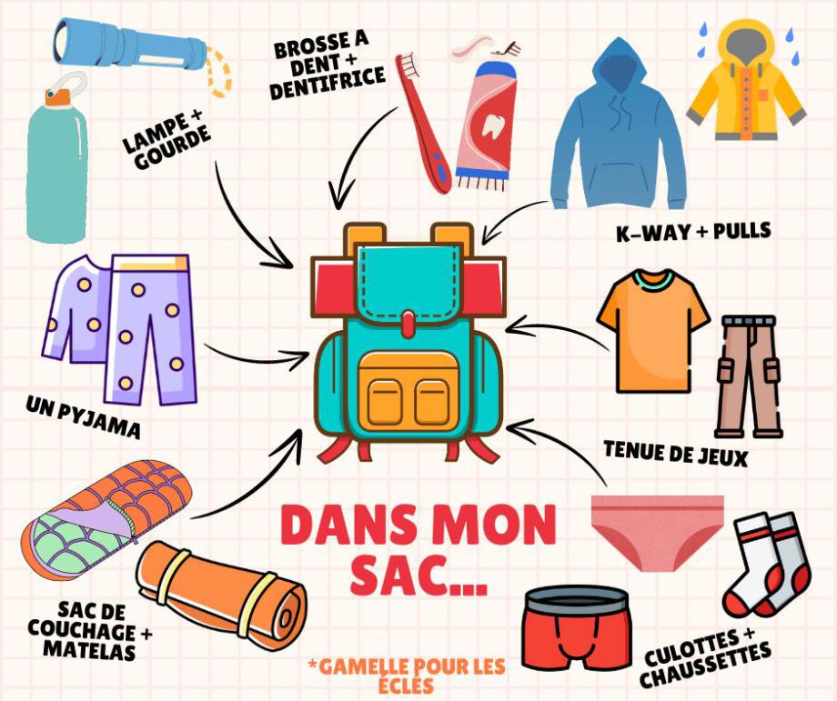 Pour les nouveaux il est important d'arriver au moment du départ avec :